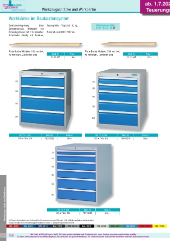 Werkzeugschränke und Werkbänke Teuerungszuschlag Werkzeugschränke und Werkbänke