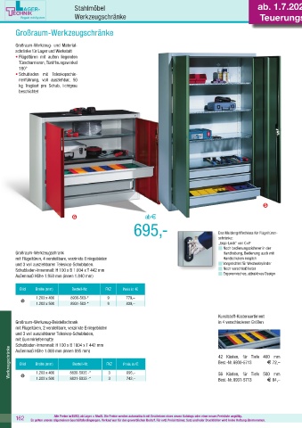 Werkzeugschränke Teuerungszuschlag Werkzeugschränke