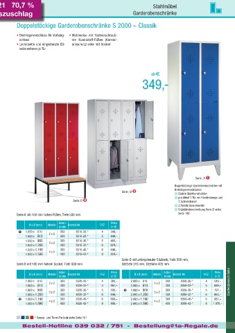 Garderobenschränke  2.090 x 1.610  Abteile  Abteil-   Bestell-Nr.  FKZ  Preis in 2  1.800 x 1.610  Abteile  breite  Bestell-Nr.  FKZ  365,–    2.090 x 1.610  Abteile  breite  Bestell-Nr.  FKZ  549,–  Garderobenschränke