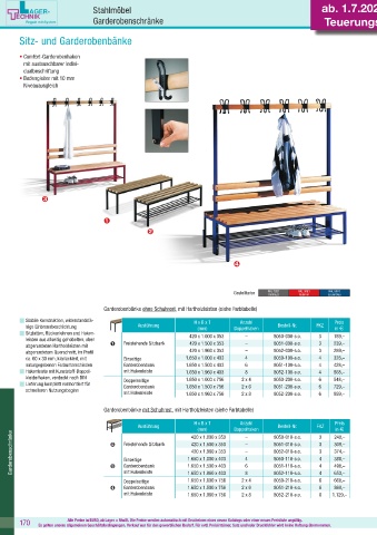 Garderobenschränke                Freistehende Sitzbank  1.650 x 1.000 x 403  – – 4 6  8051-010-s.o.  3 3 4 4  309,–