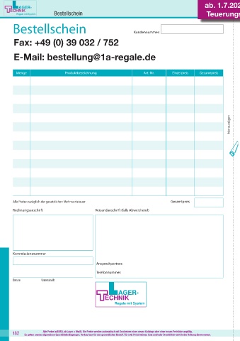 182   Es gelten unsere allgemeinen Geschäftsbedingungen. Verkauf nur für den gewerblichen Bedarf. Für evtl. Preisirrtümer, Satz und/oder Druckfehler wird keine Haftung übernommen.