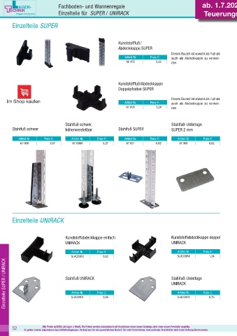 Fachboden- und Wannenregale ab. 1.7.2021 70,7 % Fachboden- und Wannenregale