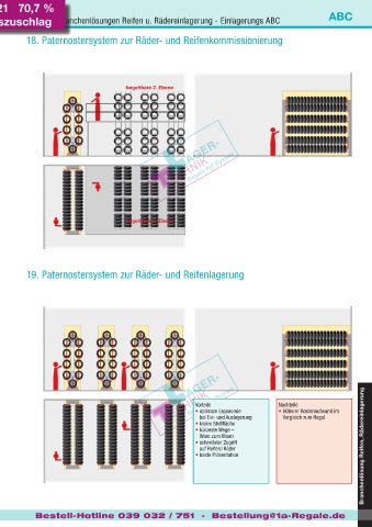 17. Rädereinlagerung mit Bediengerät z. B.Bravi Sprint und doppelter Einlage 19. Paternostersystem zur Räder und Reifenlagerung